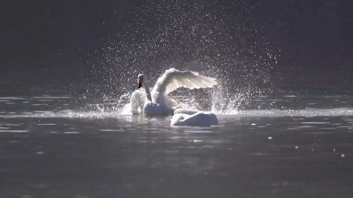 Centenas de cisnes passam o inverno no vale do rio Amarelo