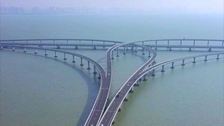 Ponte marítima da baía de Jiaozhou, uma das dez rodovias mais belas no mundo